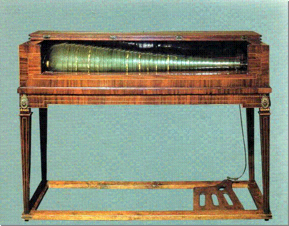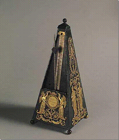 Die Abbildung zeigt das Pyramiden-Metronom von Johann Nepomuk Mälzel 1815, das zur Sammlung des Musee de la Musique Paris gehört.